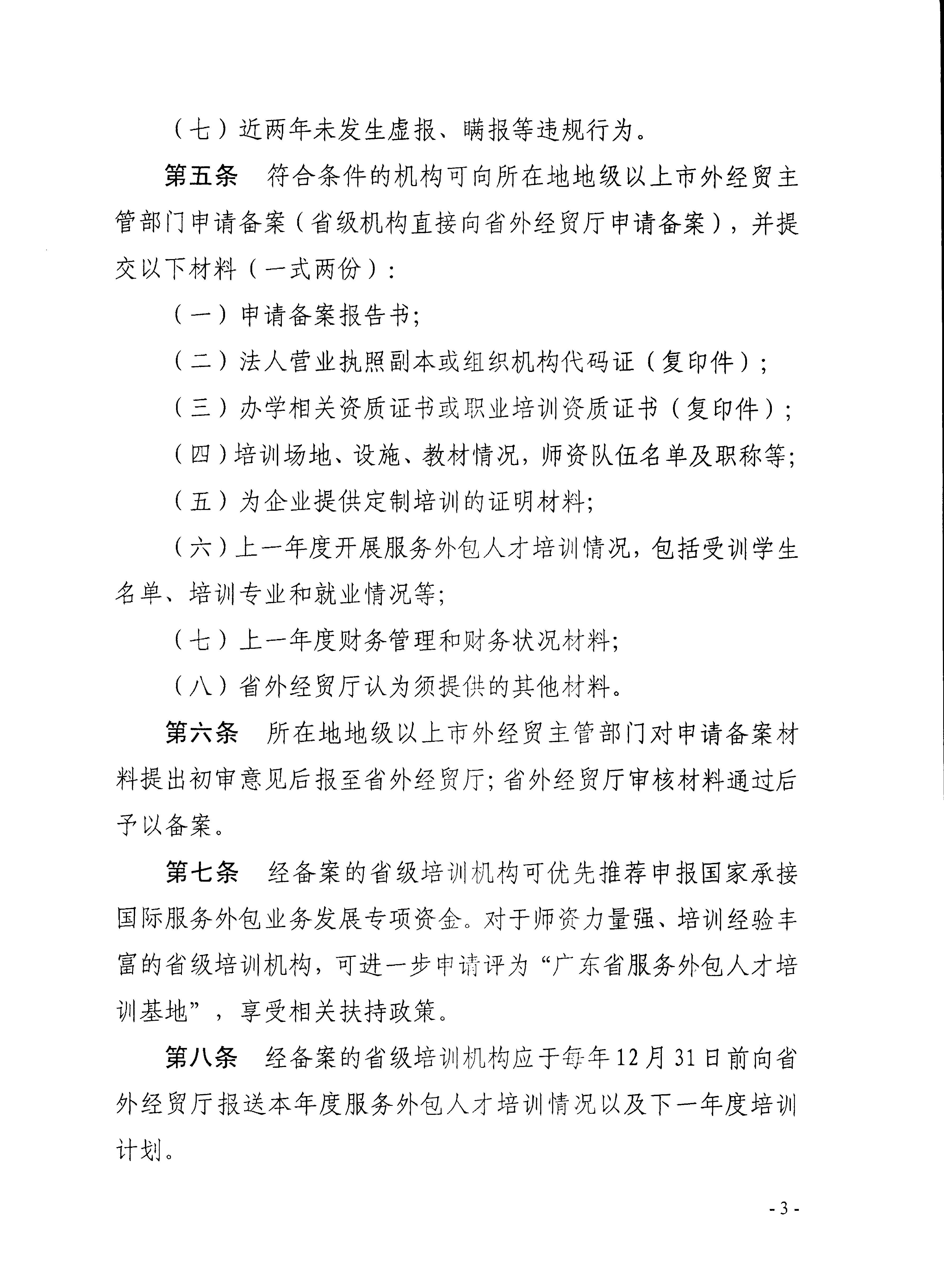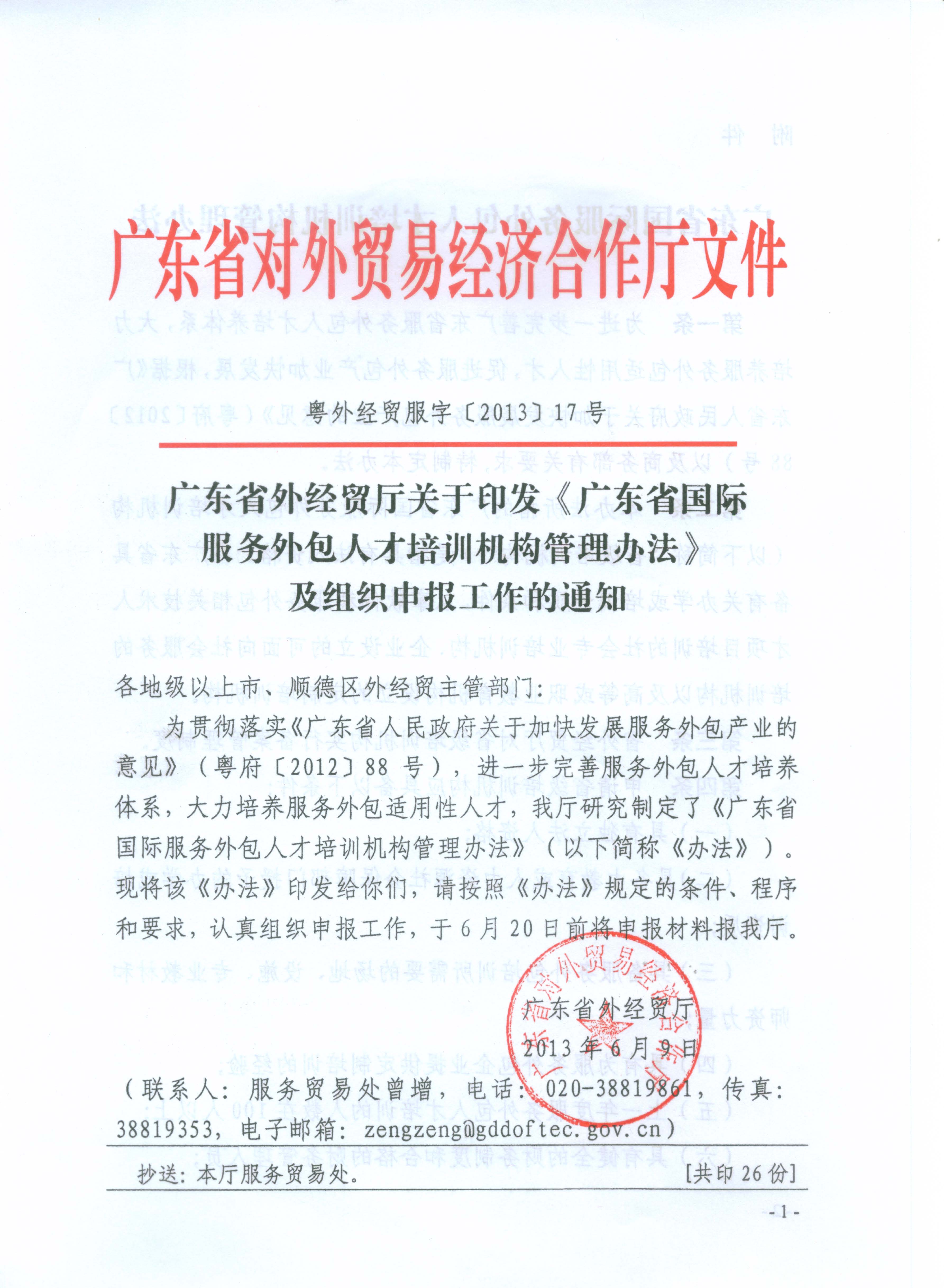 转发:广东省外经贸厅关于印发《广东省国际服务外包人才培训机构管理办法》及组织申报工作的通知