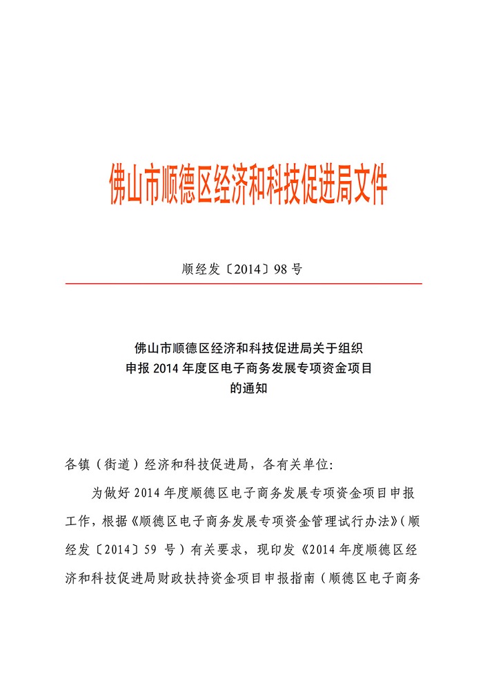 2014年度顺德区经济和科技促进局财政扶持资金项目申报指南(顺德区电子商务发展专项).zip