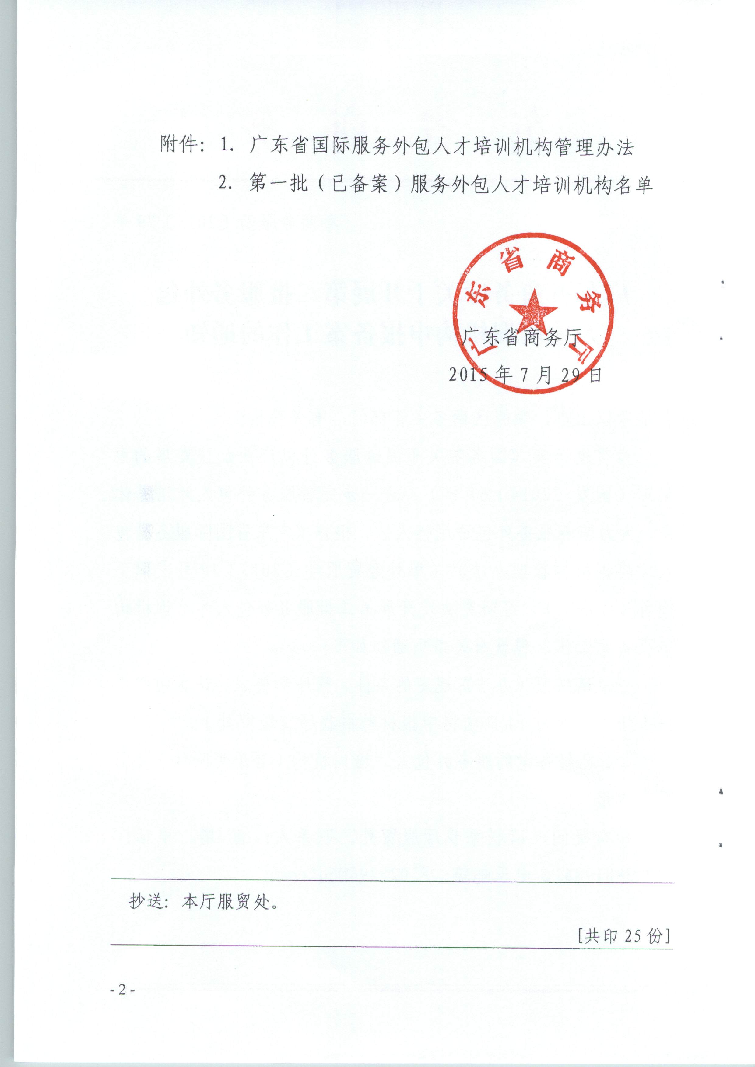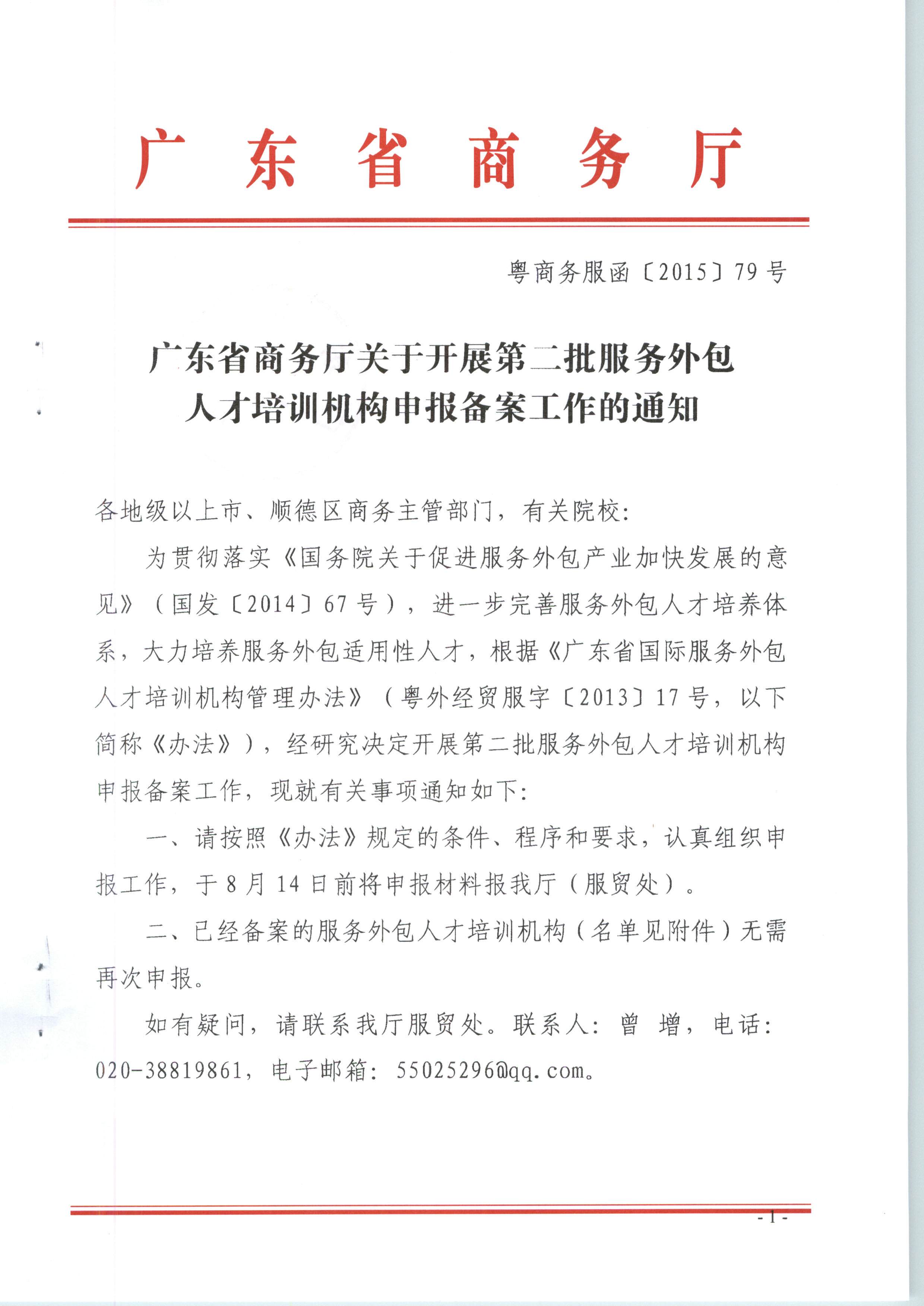 广东省商务厅关于开展第二批服务外包人才培训机构申报备案工作的通知