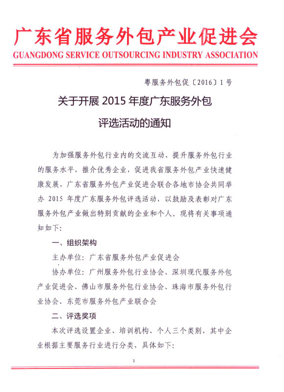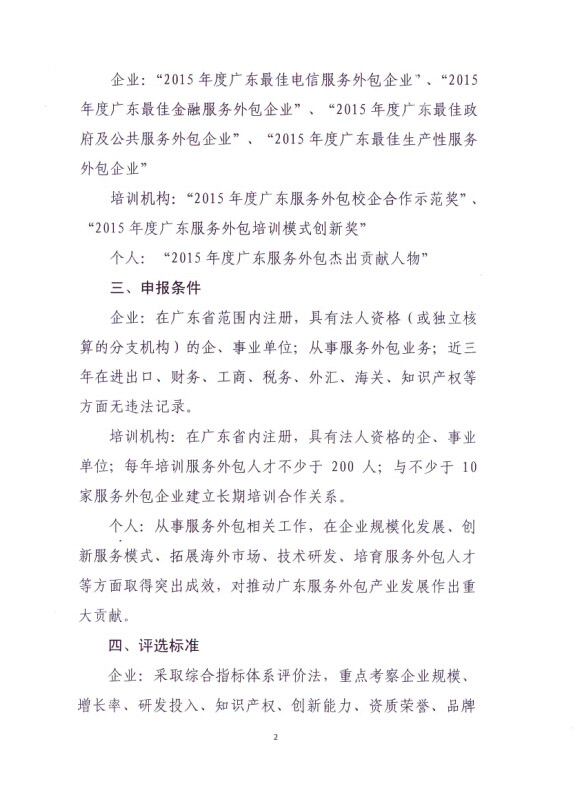 关于开展2015年度广东服务外包评选活动的通知