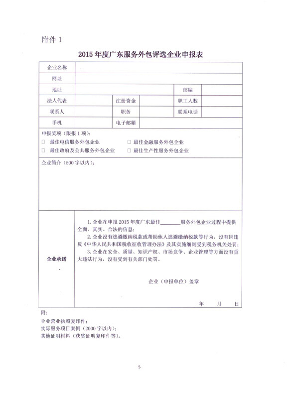 2015年度广东服务外包评选企业申报表