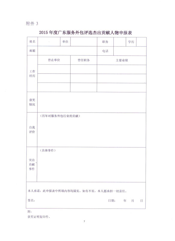 2015年度广东服务外包评选杰出贡献人物申报表