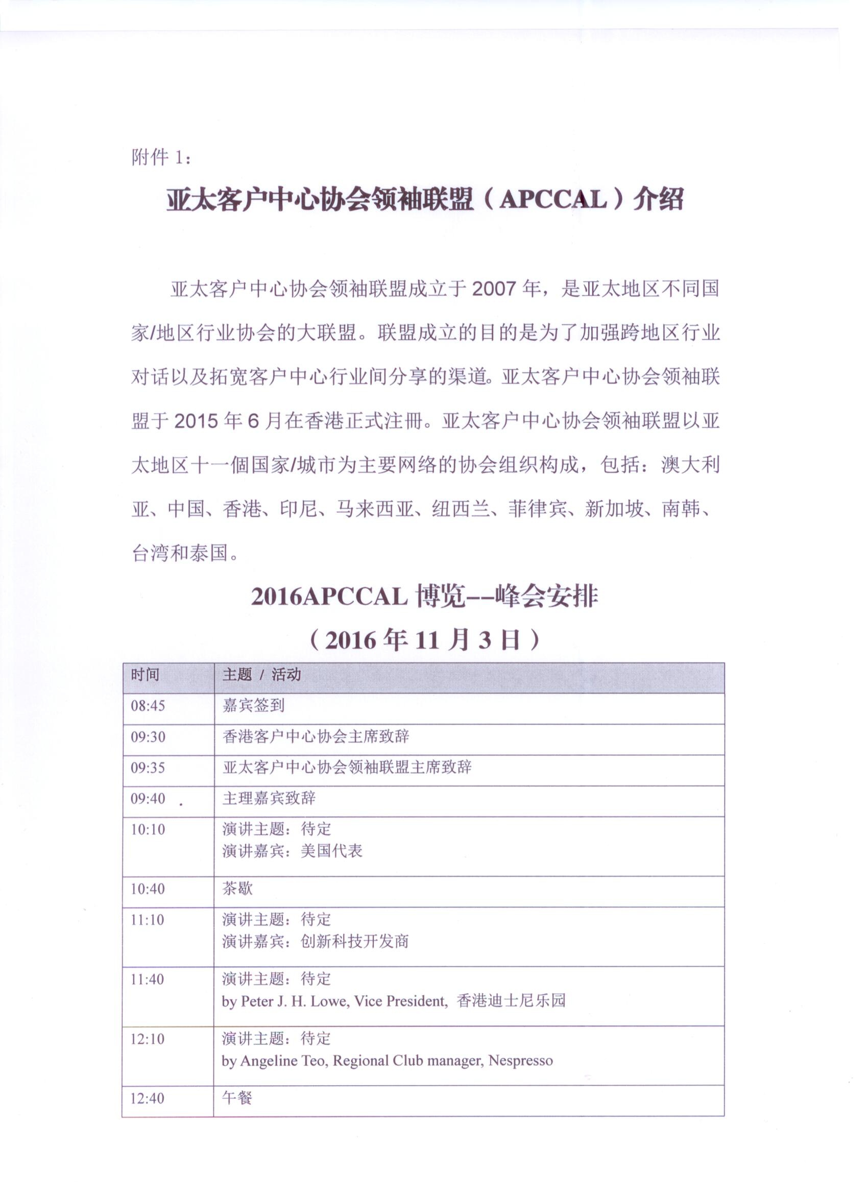 关于邀请参加2016亚太客户中心协会领袖联盟博览的函
