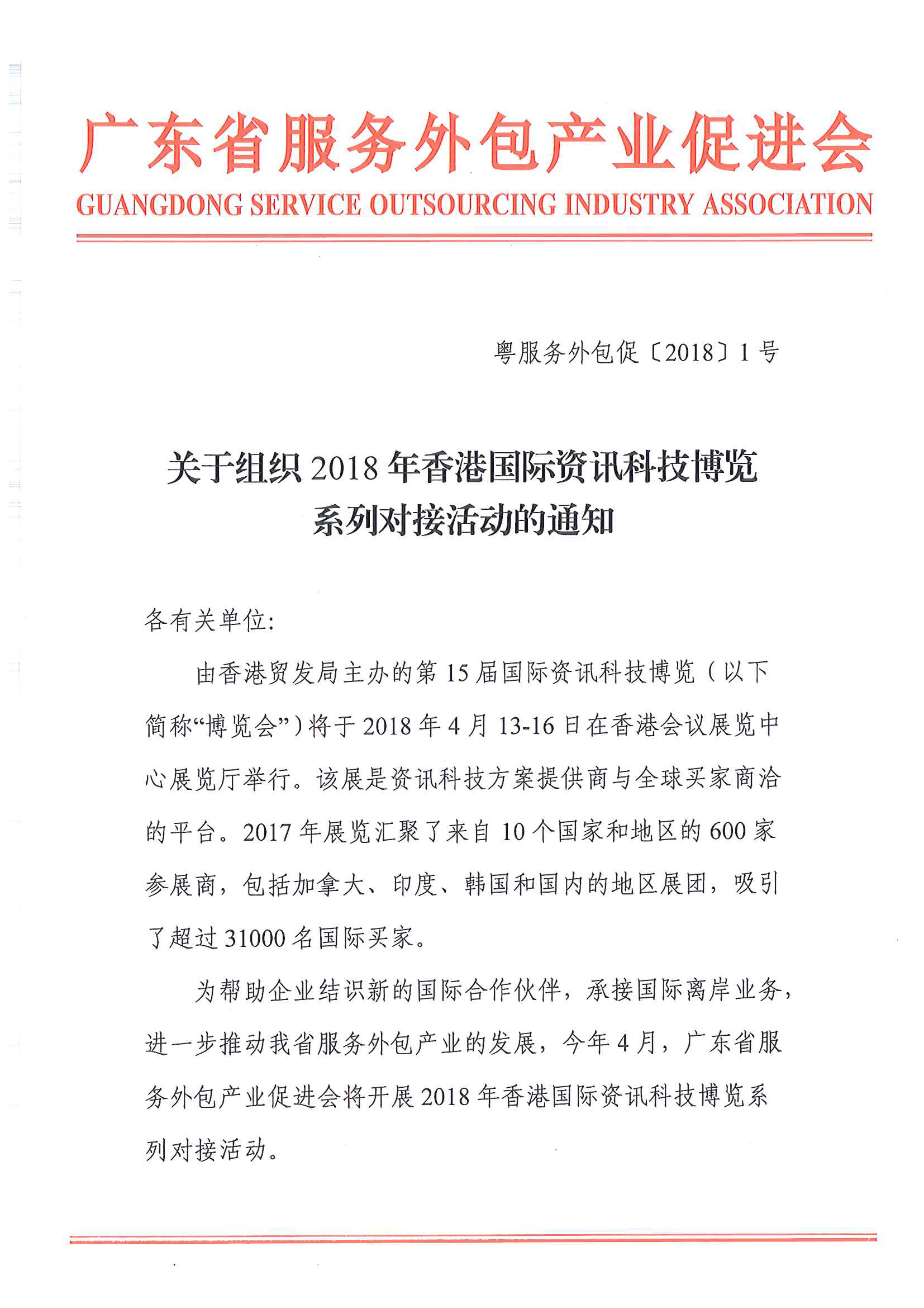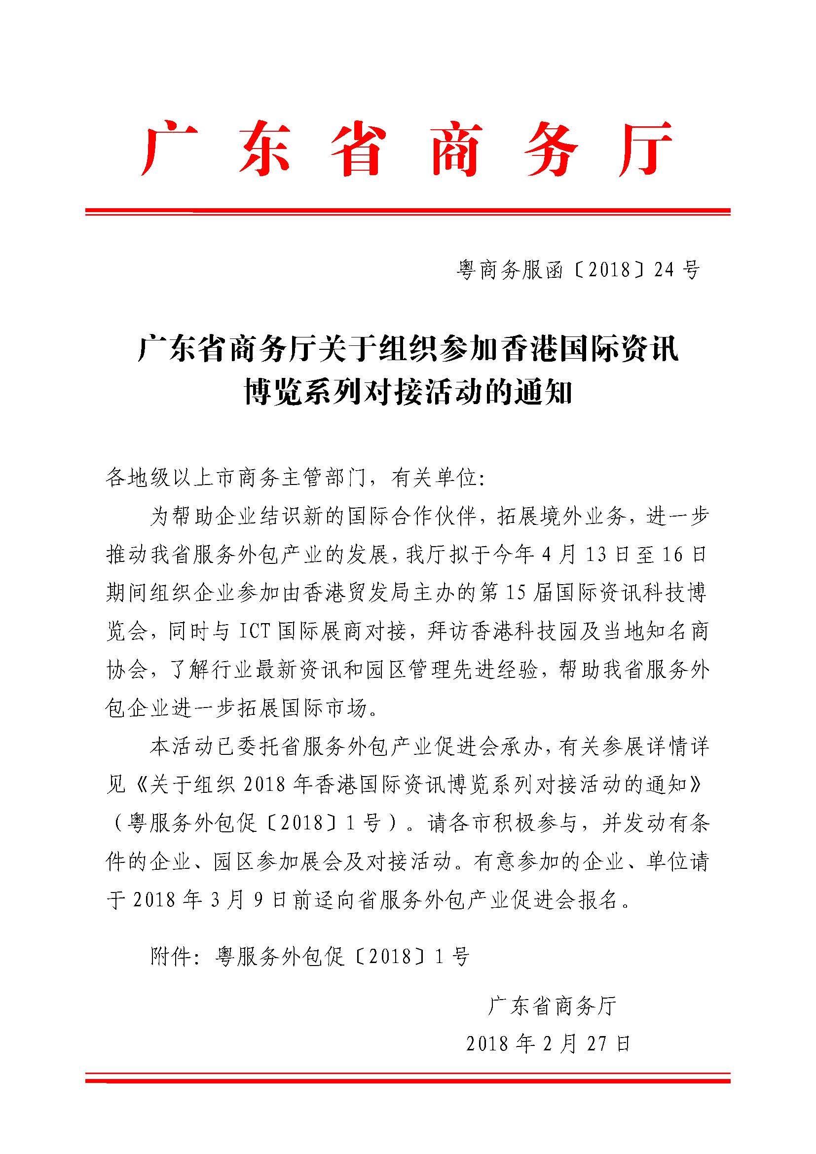 关于组织2018年香港国际资讯科技博览系列对接活动的通知