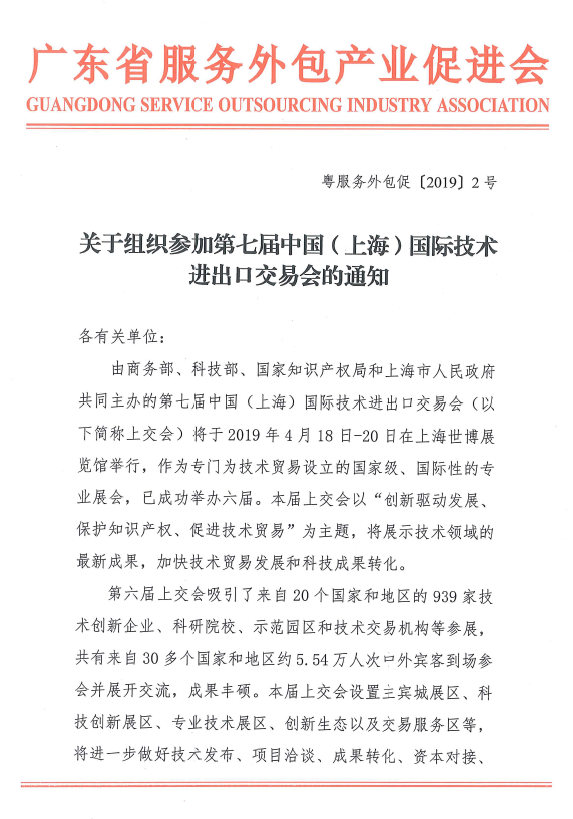 关于组织参加第七届中国(上海)国际技术进出口交易会的通知