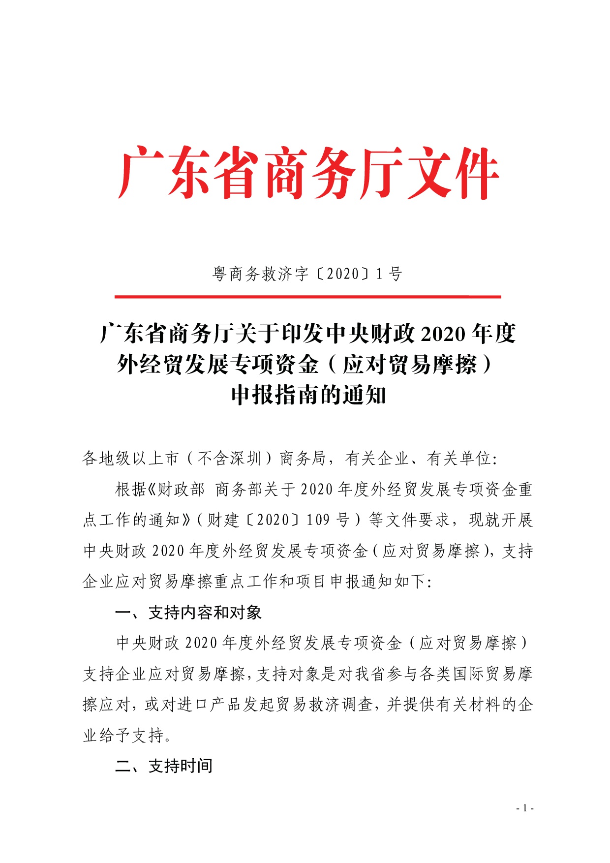 广东省商务厅关于印发中央财政2020年度外经贸发展专项资金(应对贸易摩擦)申报指南的通知.pdf