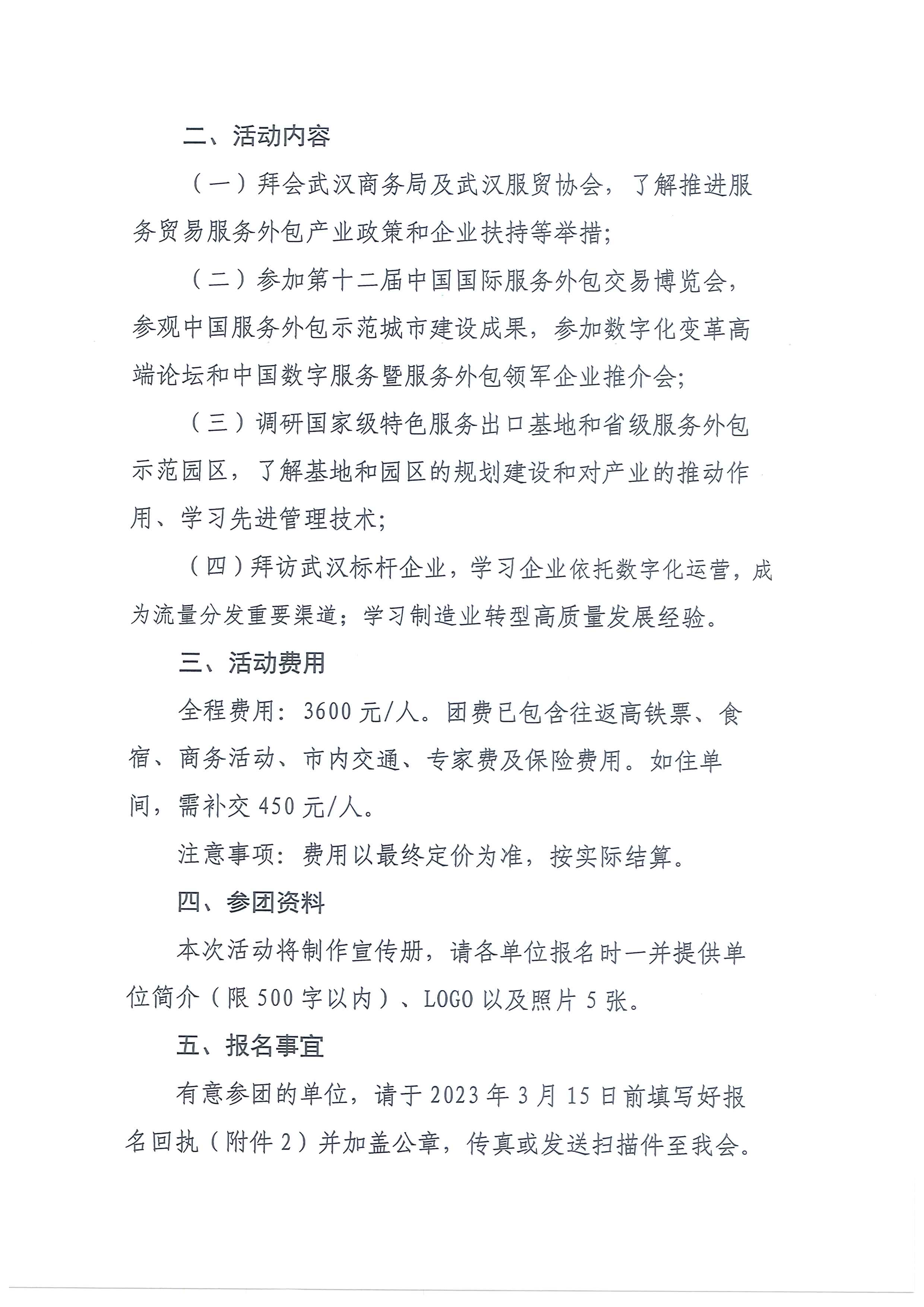 关于组织参加第十二届中国国际服务外包交易博览会暨武汉服务贸易与服务外包考察交流活动的通知